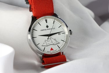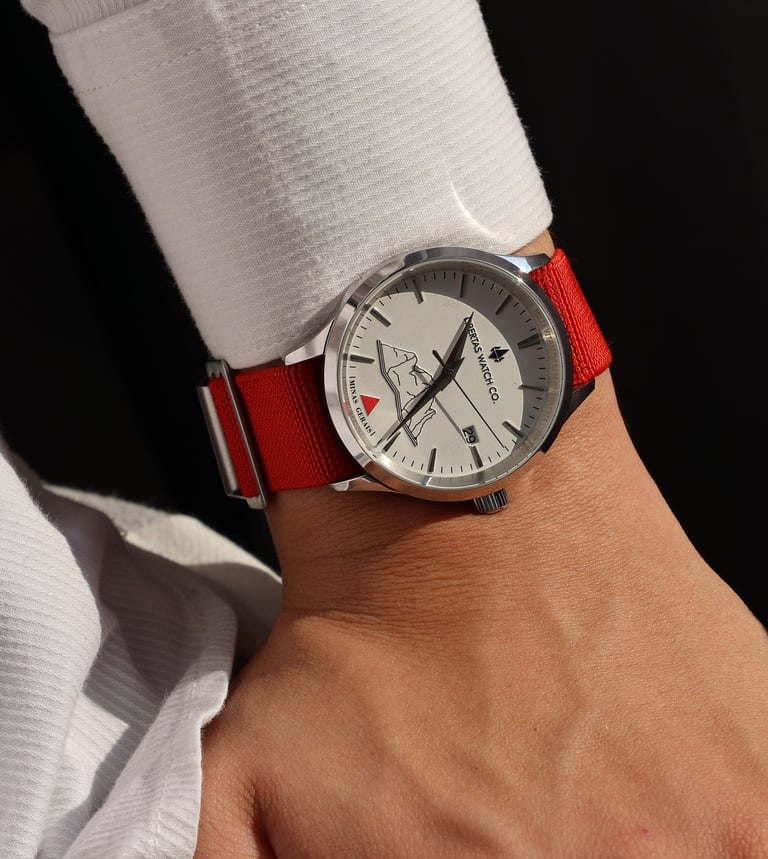 Na versão "Inconfidente", a pulseira do relógio é vermelha e feita de nylon, material intencionalmente selecionado para maior conforto no pulso. Com o baixo peso da peça, você dificilmente sentirá o relógio no seu braço. Já na versão "Cafeicultor", a pulseira é de couro marrom, para um estilo mais tradicional. Ambas essas primeiras versões da coleção Minas Gerais contêm mostrador branco.